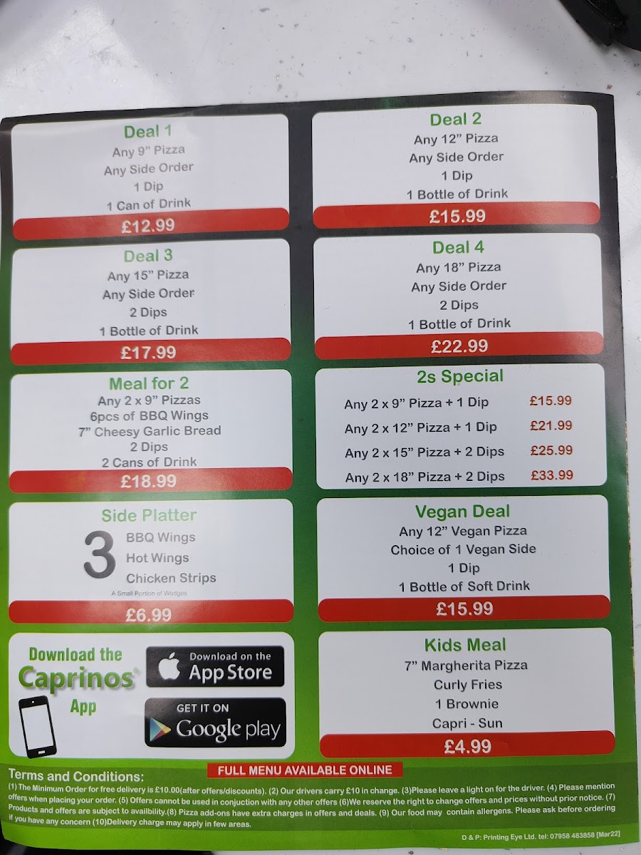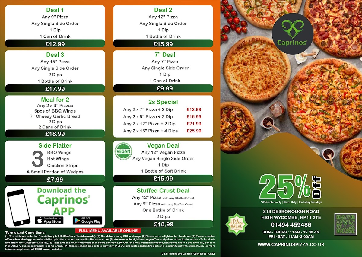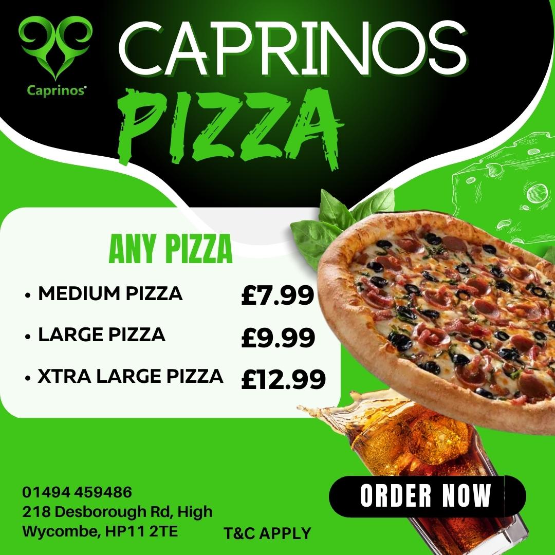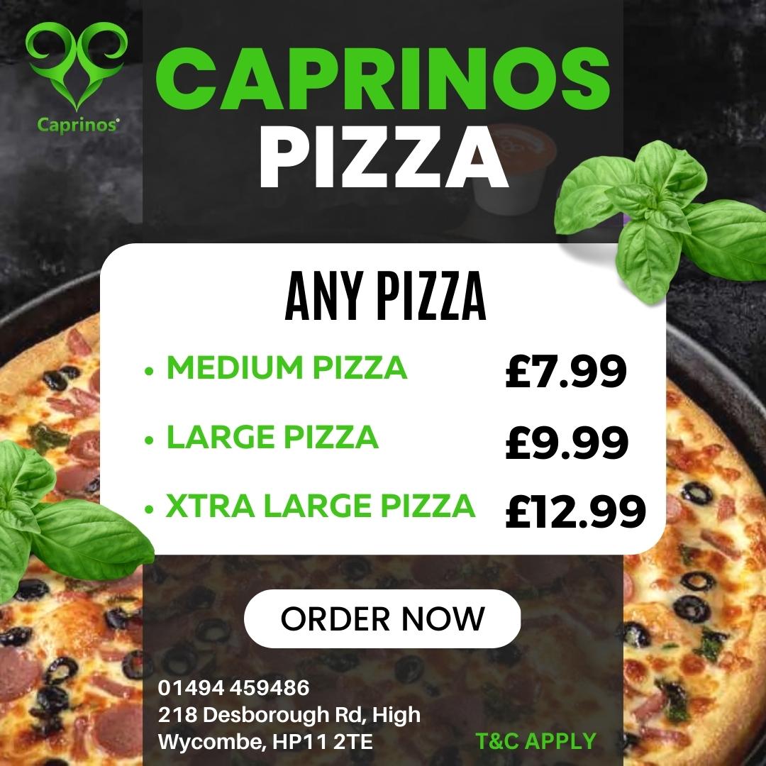 Welcome to Caprinos Pizza High Wycombe, where pizza lovers can indulge in a delightful array of flavors! Located at 218 Desborough Rd, this charming pizzeria is dedicated to serving fresh and delicious pizzas that keep customers coming back for more.